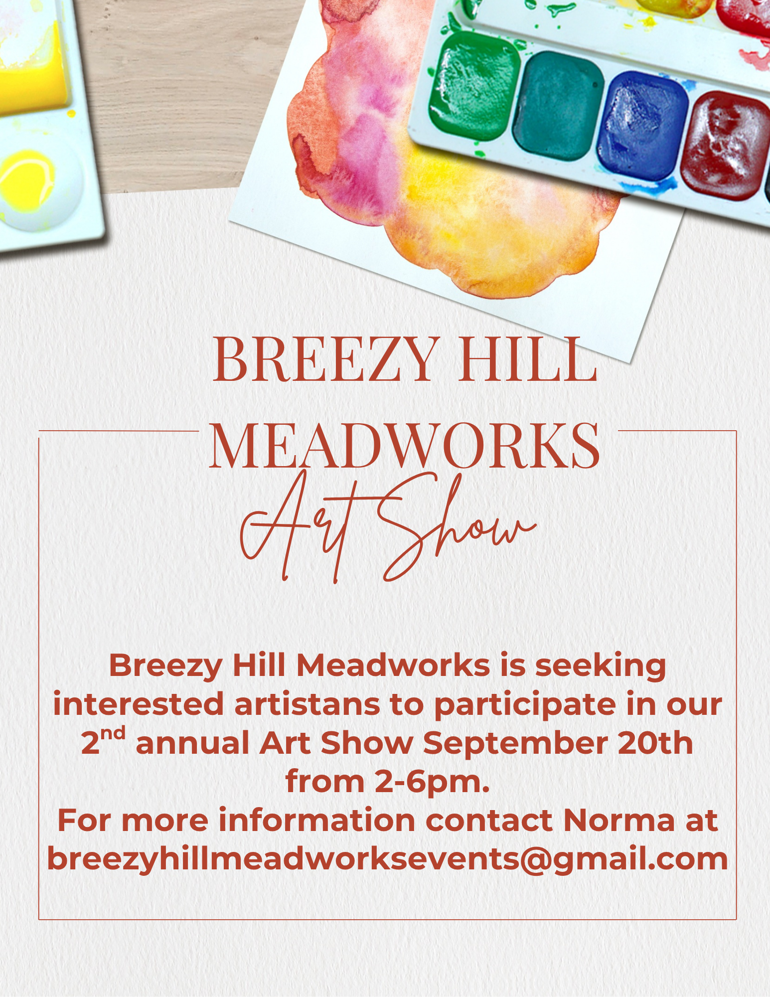 For more information contact Norma at breezyhillmeadworksevents@gmail.com