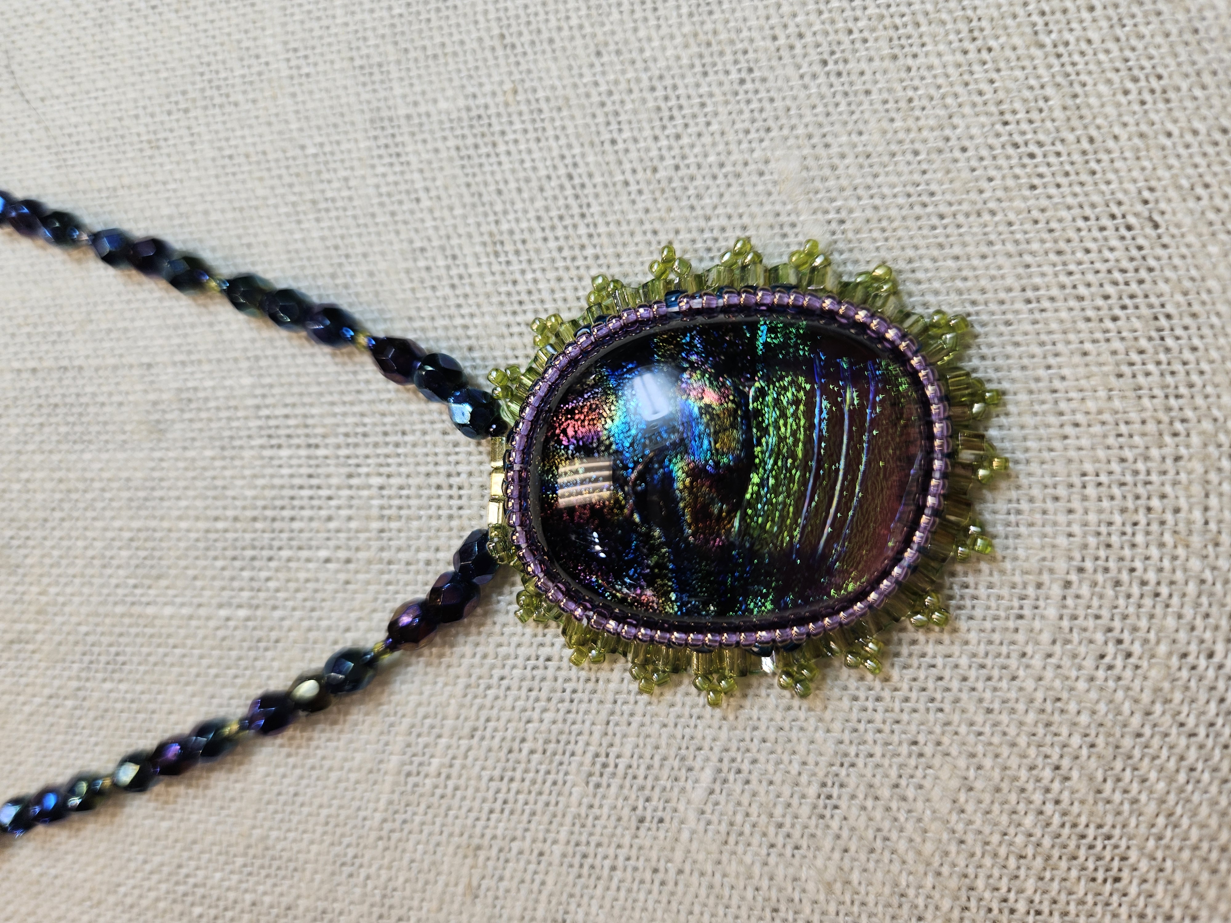 This class will teach basic bead embroidery. Students will select a decorative button and embellish with Czech or Japanese glass seed beads. The class will focus on the sequence of stitching, application of the ultra-suede backing, and creating an attachment base for the chain/hanging material.