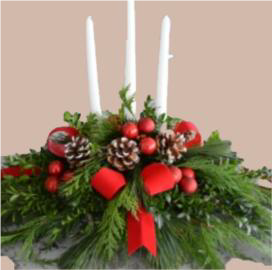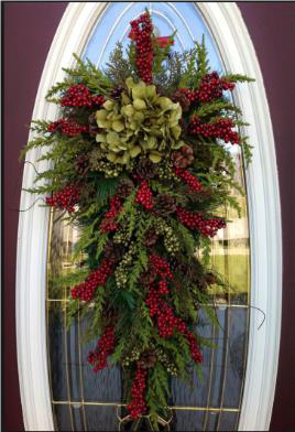 Design and decorate an evergreen wreath, embellished with natural and festve elements to dress your door or garden gate. Or create a Traditional Swag for your door, wall, or table and embellish with provided berries, fruits, or ribbons. Or take all three workshops! Make a statement centerpiece for the holidays using woodland elements, greenery and tapered candles.